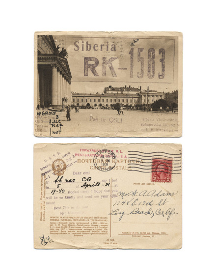 The series Silent Key charts the geopolitical map of the 20th Century as represented through QSL cards – printed traces of individual contacts which track a convoluted global narrative. “Silent Key” is ham lingo for a radio operator who has died. Other parts of the series: Antennas, Portraits and Stations and July 15, 2010, 1pm.
